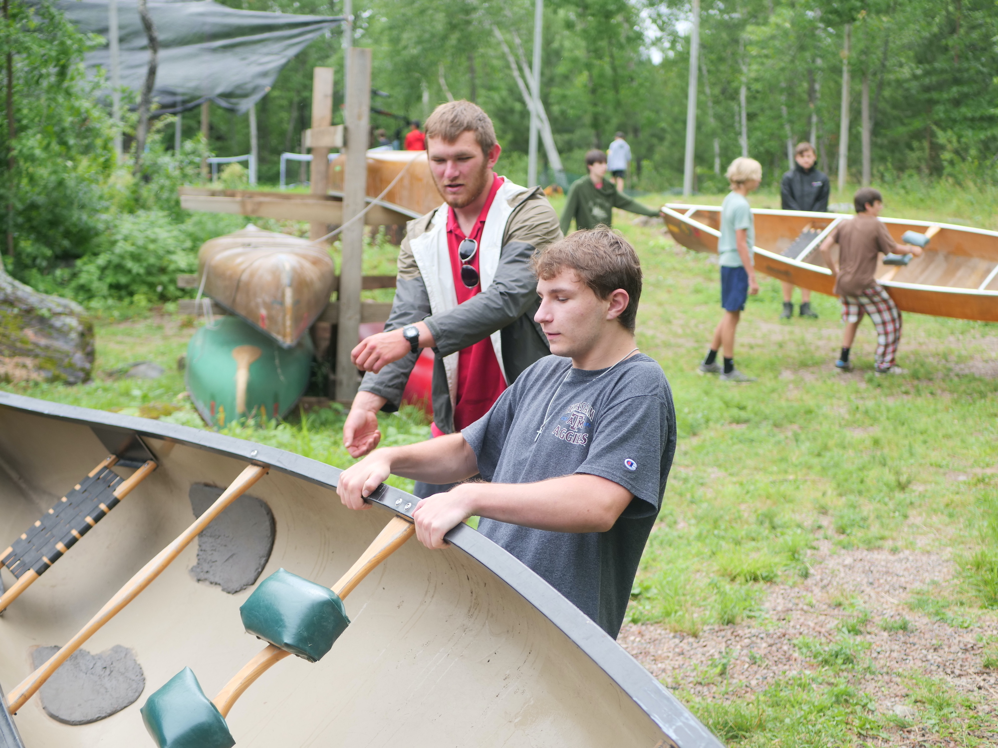 Veterans may choose to chase a canoe-tripping rank. Bushwhackers are campers who portage and efficiently stern a canoe for two full days on the trail. Junior Bushwackers handle a light canoe, while Senior Bushwhackers handle a Grumman aluminum canoe.