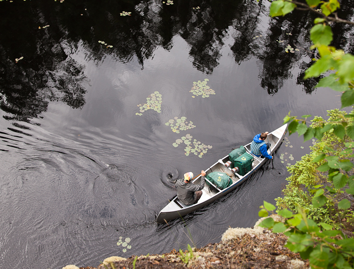 Picking up the heavy packs by their straps and loading yourself alone is hard on your body and gear. To make things more manageable, hand your crewmembers the packs they’re taking on portages and help each other flip the canoes. Your back will thank you. It also builds camaraderie!