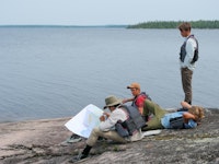 When we arrived back at Camp Voyageur, we had a lot of canoe modifications to order such as throw bags, helmets, and hardware. We took shifts packing food in pairs as it was a lot to pack for two weeks. I made painter lines for all the boats and rigged up fishing rods for everyone. Anders and Alex installed the hardware on the boats to be “rigged to flip.” The night before departure, we stayed in the Mess Hall until 10:30 poring over our route and figuring out which maps we still needed to pick up in Thunder Bay, Ontario.