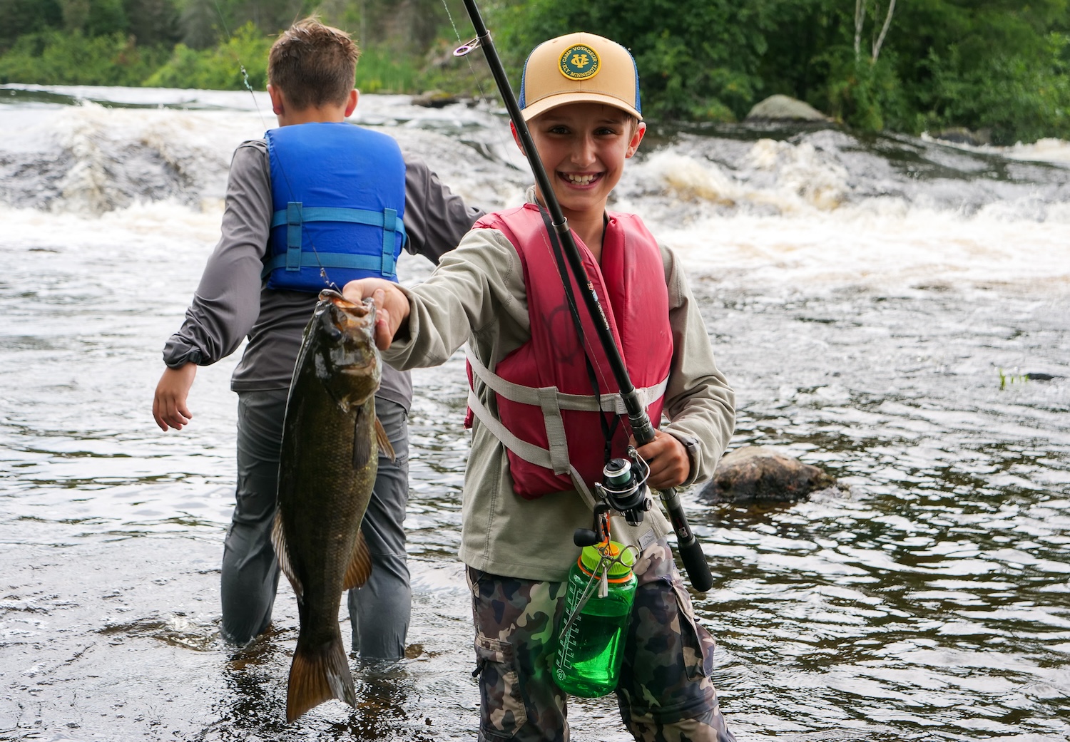Over the next couple of days, the crew caught more fish, swam down Twin Rapids, paddled next to swans, and accidentally visited Mystery Lake. Chuck J. earned his Junior Bushwhacker and practiced being a Big Man, which he officially earned the following trip. Browning’s fish will forever be scribed in Camp Voyageur’s record book, or plaque, for catching the biggest smallmouth bass of 2024. What a fish, what a trip!